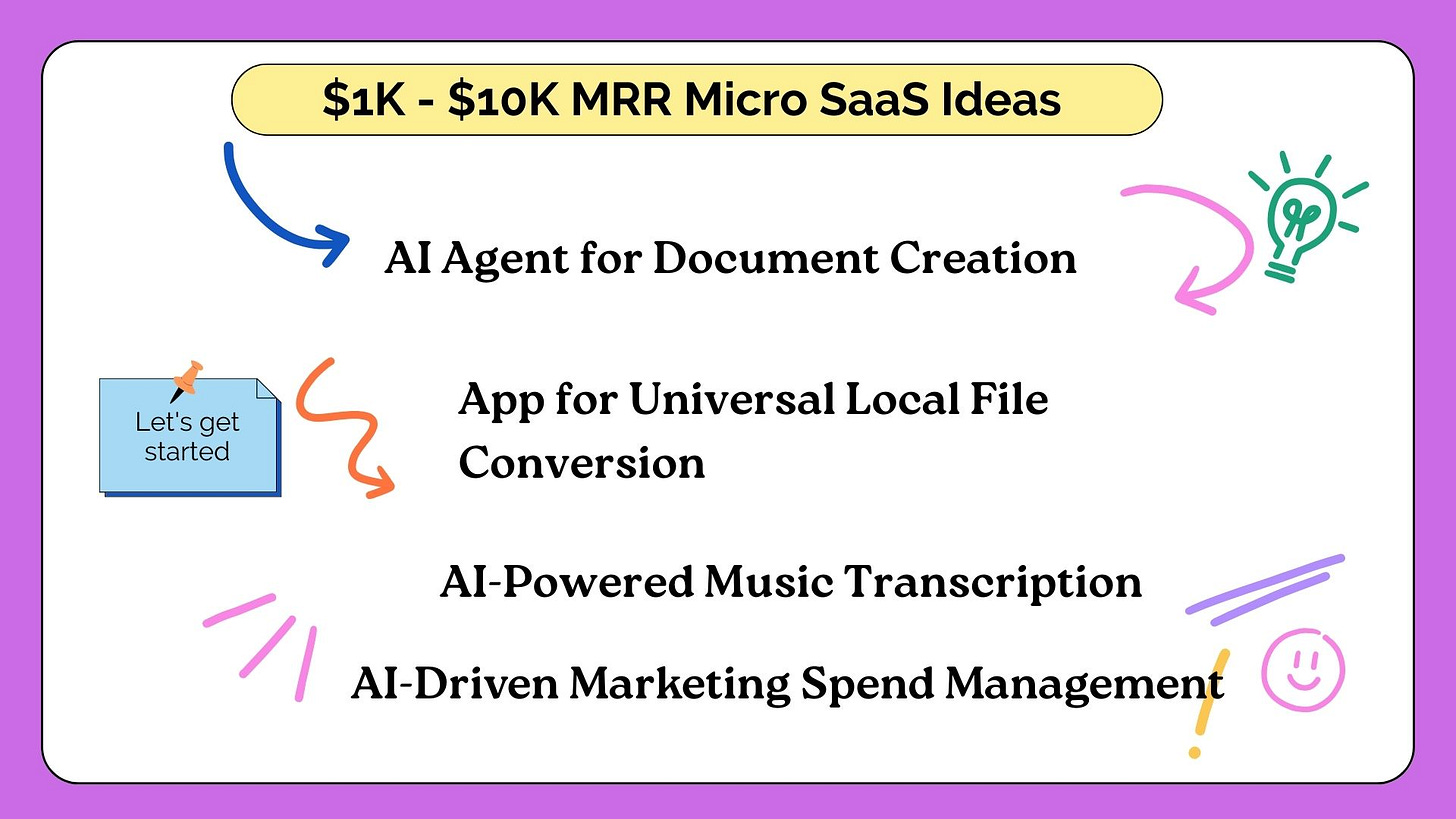 Issue #142: Building $1K-$10K MRR Micro SaaS Products: AI Agent for Document Creation, Universal Local File Conversion, AI-Powered Music Transcription, Marketing Spend Management and more - Part 1