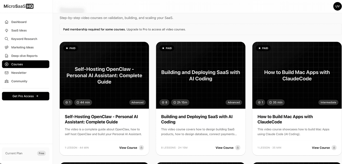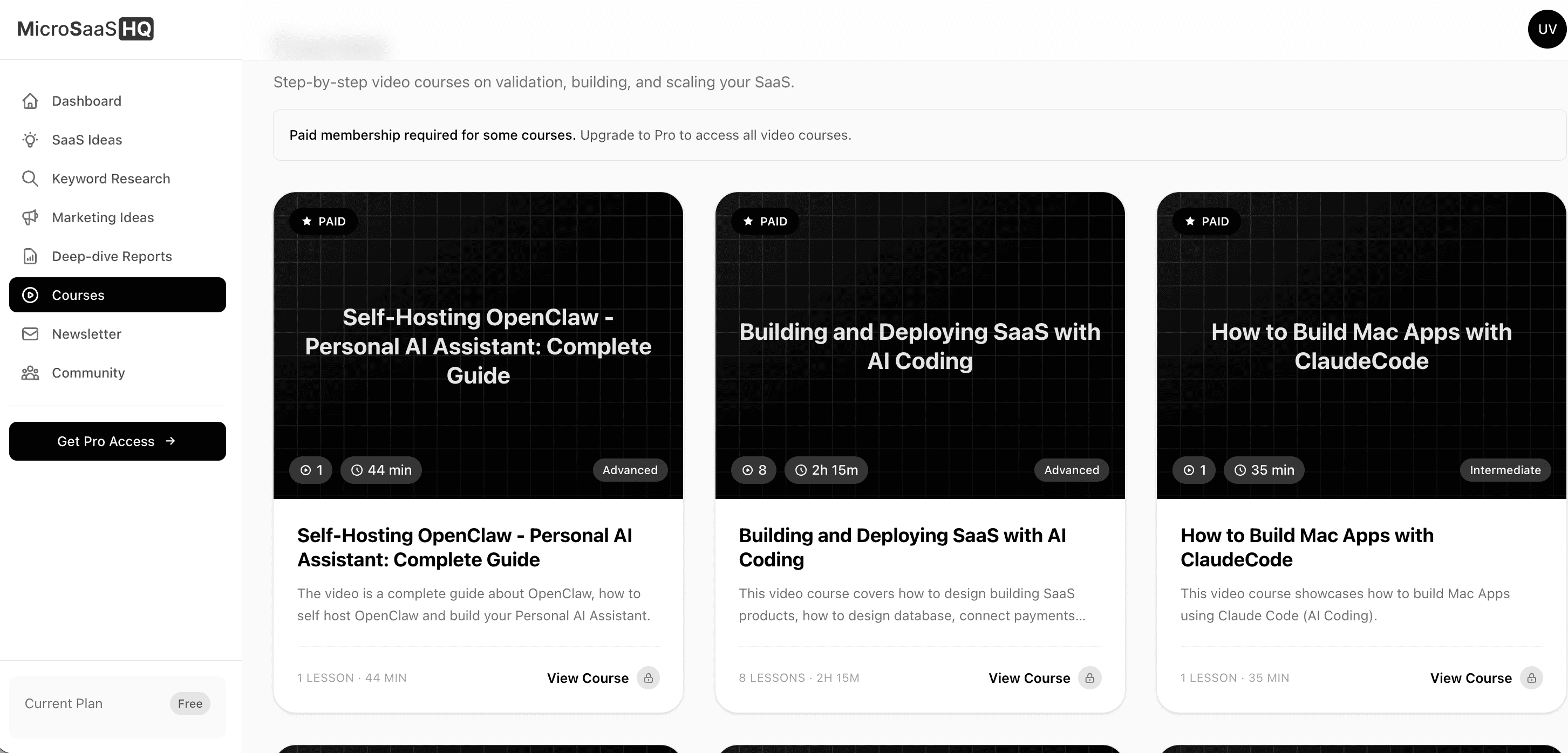 No other platform teaches the full Micro SaaS stack like this – because no other platform is built exclusively for builders like you. Here’s what you can start watching today: